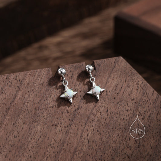 White Opal Star Dangle Stud Earrings in Sterling Silver, Silver or Gold, Lab Opal Star Earrings, Sunburst Earrings, Celestial Earrings