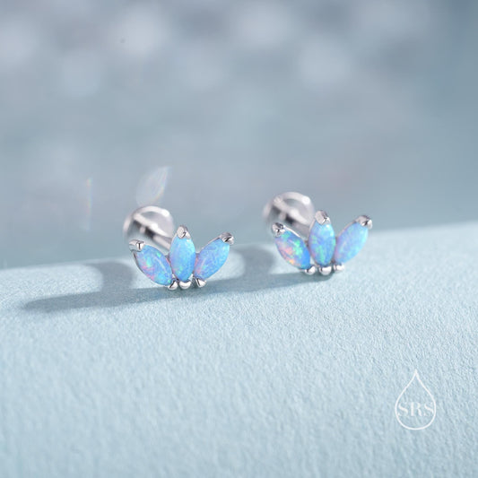 Sterling Silver Blue Opal Marquise Cluster Internally Threaded Flat Back/ Stud Earrings, Marquise Fan Stud, Silver or Gold