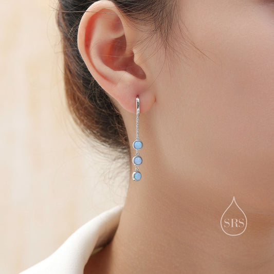 Aqua Green Opal Dangle Charm Hoop Earrings, Opal Trio Dangle Hoop Earrings, Silver or Gold, Opal Chain Charm Hoops