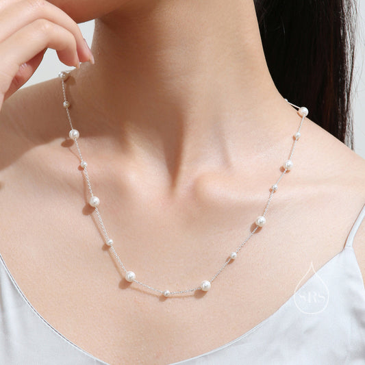 Mother of Pearl Two Way Necklace in Sterling Silver, Silver or Gold , Adjustable Length, Lariat Necklace, Satellite Beaded