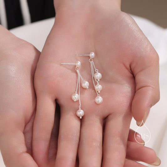 Natural Freshwater Pearl Drop Dangle Earrings in Sterling Silver, Silver or Gold, Delicate Pearl Cascade Earrings, Genuine Pearls