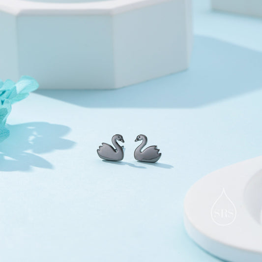 Black Swan Stud Earrings in Sterling Silver - Black Rhodium Coated Sterling Silver, Animal Stud Earrings - Bird Earrings
