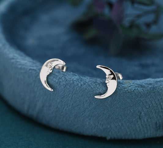 Man in the Moon Stud Earrings in Sterling Silver - Moon Face Earrings - Gold or Silver - Cute, Fun, Whimsical and Pretty Jewellery
