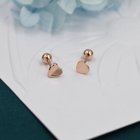Small Pair of Folded Heart Stud Earrings in Sterling Silver, Rose Gold, Silver, Screw Back Earrings - helix, cartilage, conch, tragus