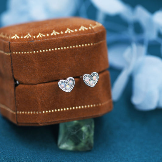 Extra Tiny Opal Heart Stud Earrings in Sterling Silver - Gold, Rose Gold and Silver Petite Stud Earrings