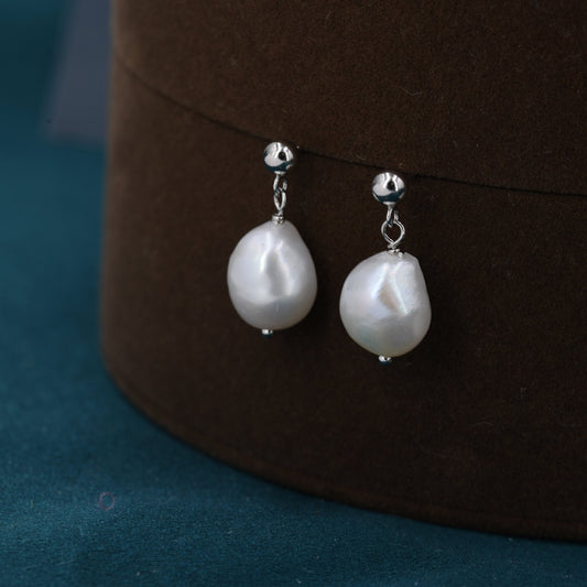 Genuine Fresh Water Pearls Drop Stud Earrings, Baroque Pearl Earrings, Sterling silver with 18ct Gold Plating, Simple and Minimalist