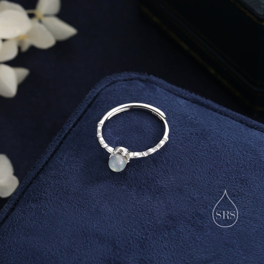 Sterling Silver Vintage Inspired Moonstone CZ Ring, Adjustable Size, Simulated Moonstone Ring, Vintage Style Lab Created Moonstone Ring