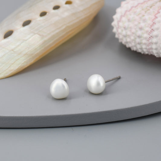 Dainty Keshi Pearls Stud Earrings in Sterling Silver, Baroque Pearl, Genuine Freshwater Pearls Earrings, Simple and Minimalist, Contemporary