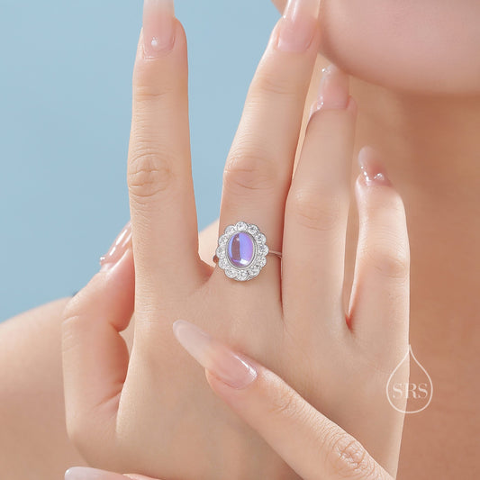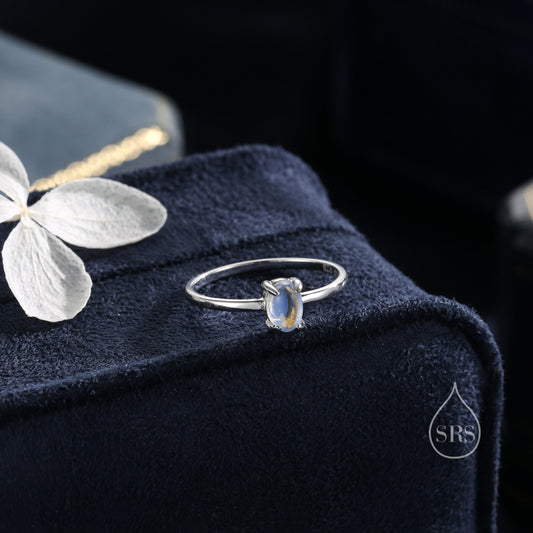 Sterling Silver Moonstone Oval Ring, Simulated Moonstone Oval Ring, Minimalist Lab Moonstone Ring