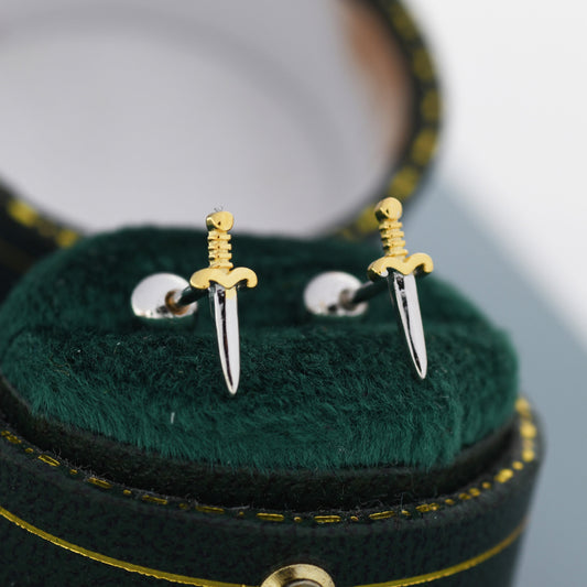 Tiny Little Dagger Sword Screw Back Earrings in Sterling Silver - Stacking Earrings - Ear Stacks, Screwback Earrings