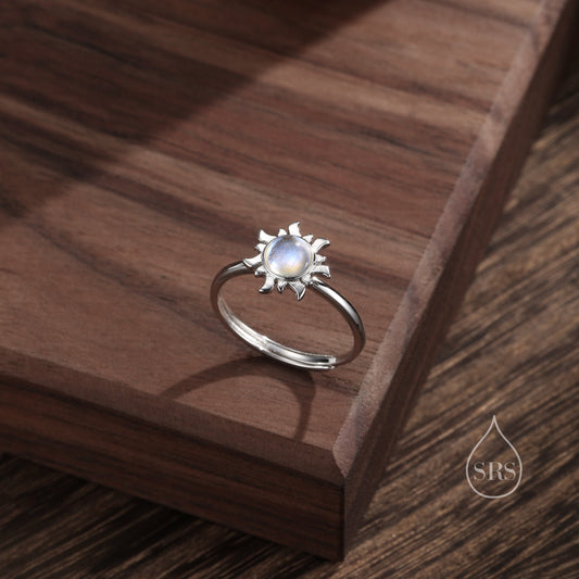Sterling Silver Rotatable Moonstone Sun Ring, Fidget Ring, Adjustable Size Sun Ring, Rotatable Ring, Dainty and Delicate