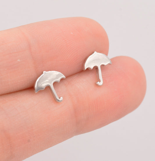 Umbrella Stud Earrings in Sterling Silver - Weather Earrings - Cute, Fun, Whimsical