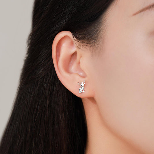 Sterling Silver Fennec Fox Stud Earrings, Silver or Gold or Rose Gold, Cute Fox Earrings, Cute and Quirky Earrings