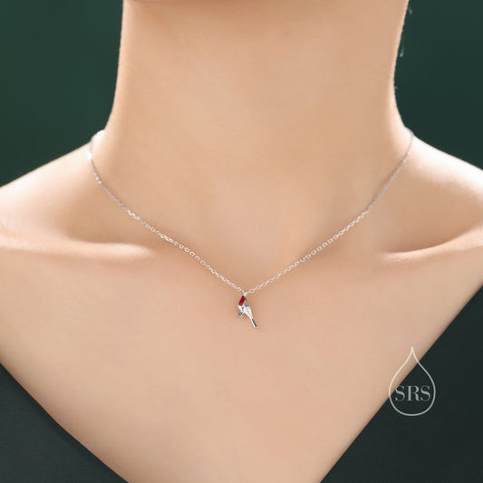 Extra Tiny Robin Bird Pendant Necklace in Sterling Silver with Enamel, Silver Robin Pendant, Nature Inspired Jewellery, Bird Necklace