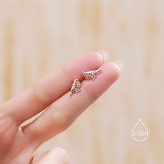 Crystal Robin Bird Stud Earrings in Sterling Silver, British Bird Earrings, Nature Inspired Animal Earrings, CZ Robin Stud