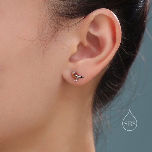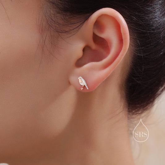 Tiny Robin Bird Stud Earrings in Sterling Silver, Two Tone Coating, British Bird Earrings, Nature Inspired Animal Earrings