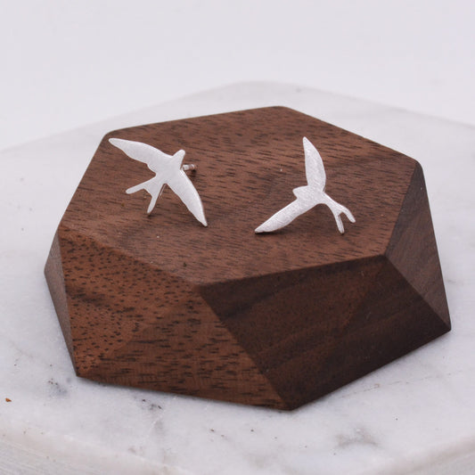 Sterling Silver Mismatched Asymmetric Swallow Bird Silhouette Stud Earrings -Silver or Gold or Rose Gold