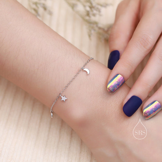 Sterling Silver Moon and Star Charm Bracelet, Silver or Gold, Moon and Star Charm Bracelet, Celestial Jewellery