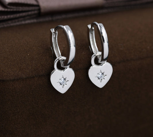 Sterling Silver Starburst Heart Hoop Earrings, Detachable Heart Charm Hoop Earrings, Silver or Gold, Interchangeable and detachable