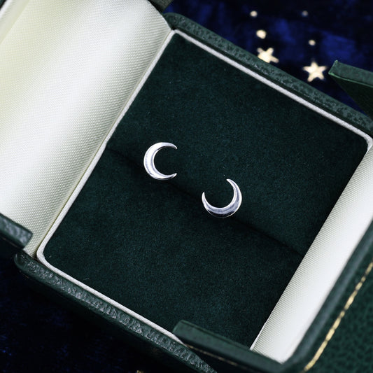 Crescent Moon Stud Earrings in Sterling Silver - Gold or Silver - New Moon Earrings - Petite Stud Earrings