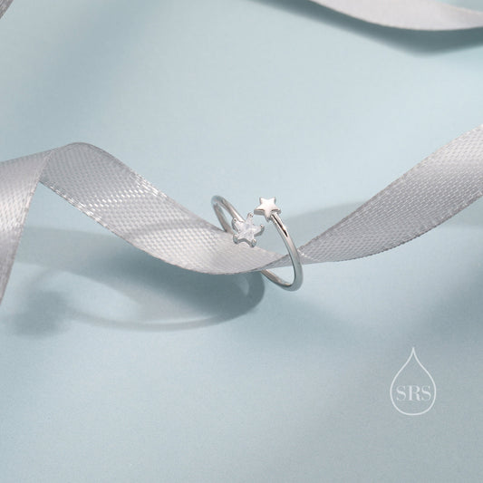 Double Star Open Ring in Sterling Silver, Adjustable, Star Ring, Celestial Jewellery, Stars