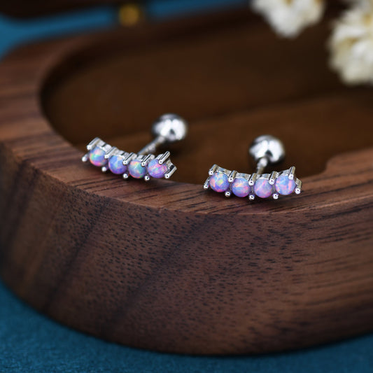 Tiny Purple Opal Curved Bar Screw Back Earrings in Sterling Silver, Silver or Gold, Opal Screw Back Earrings, Fire Opal