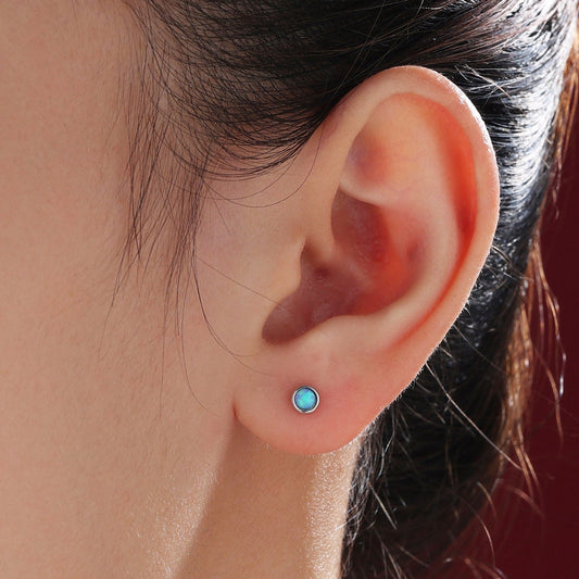 Tiny 3mm Blue Opal Screw Back Earrings in Sterling Silver, Small Opal Stud, Blue Opal Screw Back Earrings, Fire Opal