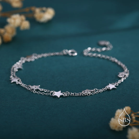 Double Layer Star Bracelet in Sterling Silver, Silver or Gold or Rose Gold, Floating Star Bracelet, Silver Star Bracelet, Tiny Star Bracelet