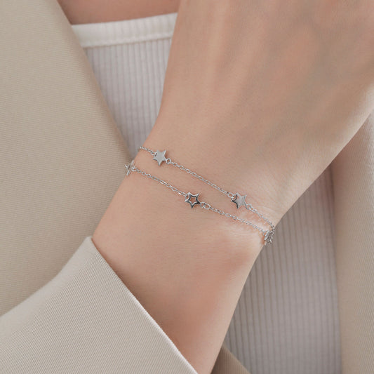 Double Layer Star Bracelet in Sterling Silver, Silver or Gold or Rose Gold, Floating Star Bracelet, Silver Star Bracelet