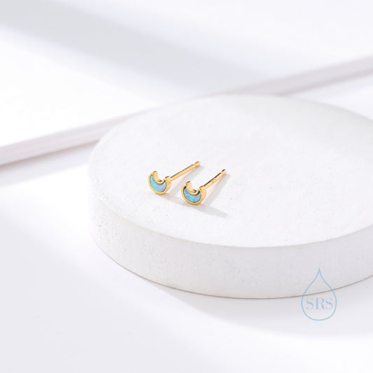 Extra Tiny Opal Moon Stud Earrings in Sterling Silver - Blue Opal or White Opal - Gold or Silver - New Moon Earrings - Petite Stud Earrings