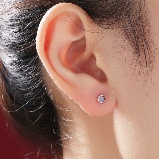 Tiny 3mm Purple Opal Screw Back Earrings in Sterling Silver, Small Opal Stud, Comsic Purple Opal Screw Back Earrings, Fire Opal