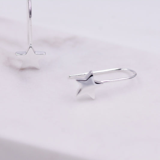 Sterling Silver Star Drop Earrings in Sterling Silver, Star Hook Earrings, Dangle Celestial Earrings