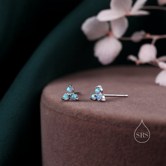 Extra Tiny Opal Trio Stud Earrings in Sterling Silver, Silver or Gold, Three Opal Trinity Stud, Opal trefoil Earrings