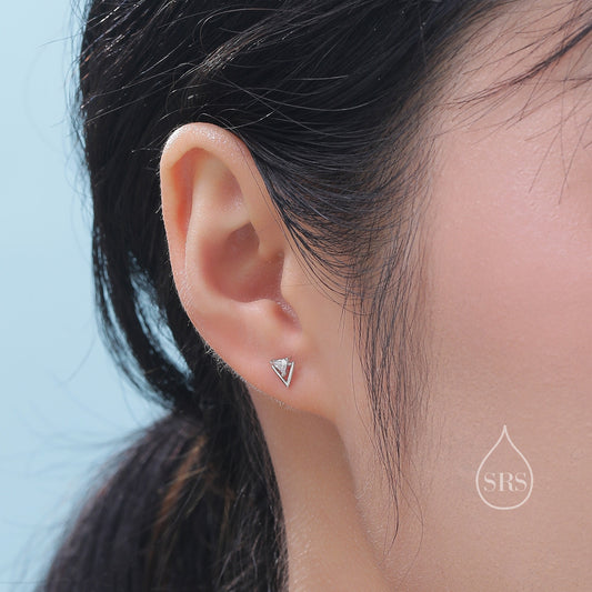 Trillion Cut Triangle CZ Stud Earrings in Sterling Silver, Silver or Gold or Rose Gold, Cubic Zirconia Crystal Earrings, Triangle Earrings