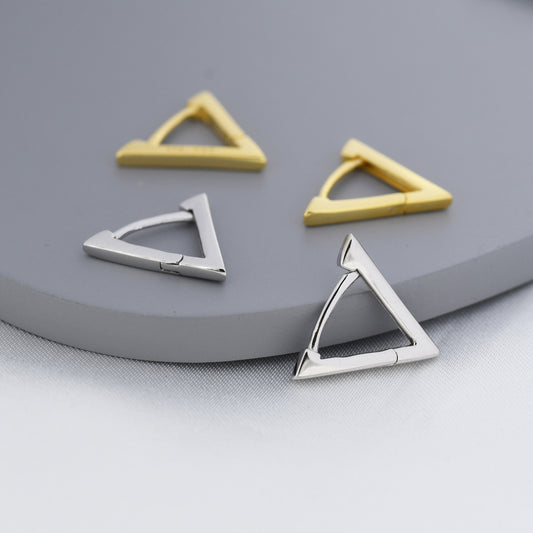 Sterling Silver Triangle Huggie Hoop Earrings, Silver or Gold, Simple Geometric Hoop Earrings