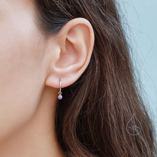 Sterling Silver Extra Skinny Opal Huggie Hoops, White Opal or Blue Opal or Purple Hoop, Opal Infinity Hoops Earrings, Opal Earrings