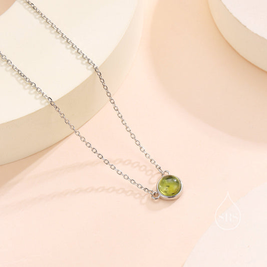 Sterling Silver Genuine Peridot Dainty Coin Pendant Necklace - Delicate Crystal Coin Necklace, August Birthstone