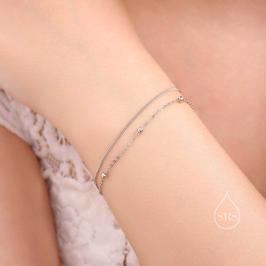 Sterling Silver Double Layer Satellite Chain Bracelet in Sterling Silver, Silver or Gold, Layer Bracelet, Minimalist Bracelet
