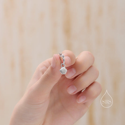 Sterling Silver Shell Huggie Hoops Earrings, Silver or Gold or Rose Gold, Ocean Earrings, Sea Shell Earrings,