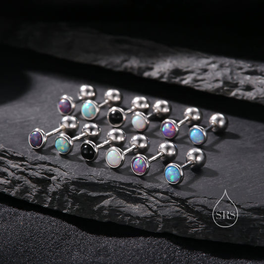 Tiny 3mm Aqua Green Opal Screw Back Earrings in Sterling Silver, Small Opal Stud, Blue Green Opal Screw Back Earrings, Fire Opal
