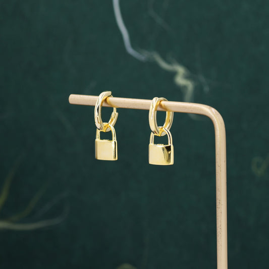 Sterling Silver Padlock Hoop Earrings, Detachable Lock Charm Dangle Hoop Earrings, Silver or Gold, Interchangeable