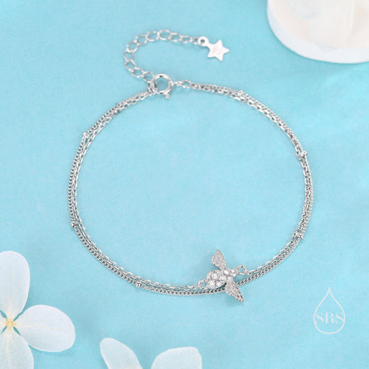 Sterling Silver Bumble Bee Double Layer Bracelet in Sterling Silver, Silver, Gold or Rose Gold, Delicate Bee Bracelet, Minimalist Bracelet,