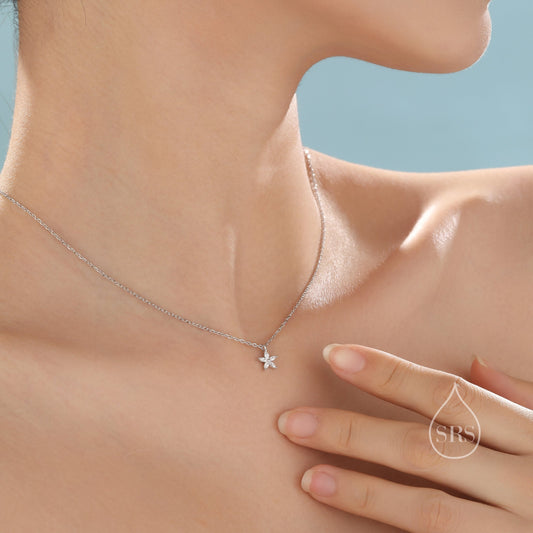 Tiny CZ Flower Necklace in Sterling Silver, Silver or Gold, CZ Flower Necklace, CZ Cluster Floral Necklace