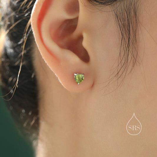 Natural Peridot Stone Heart Stud Earrings in Sterling Silver - 5mm Genuine Peridot Crystal Stud Earrings - Semi Precious Gemstone