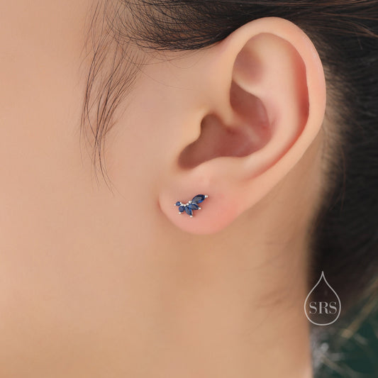 Sapphire Blue CZ Marquise Cluster Stud Earrings in Sterling Silver, Silver or Gold, Marquise Earrings, CZ Wing Earrings, Mini Crawler