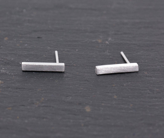 Sterling Silver Bar Stud Earrings ,Textured Finish, Minimalist Geometric Jewellery
