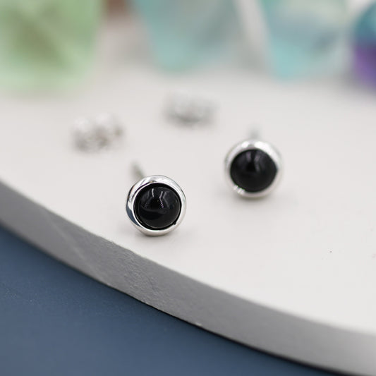Sterling Silver Black Onyx Stud Earrings, 4mm Genuine Black Onyx Stone, Semi-precious Jewellery