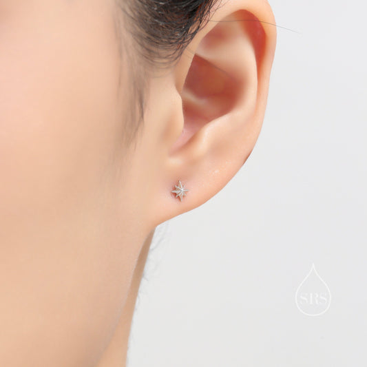 Tiny Starburst Stud Earrings in Sterling Silver, Silver or Gold or Rose Gold, Star Earrings, Sunburst Earrings, Celestial Jewellery