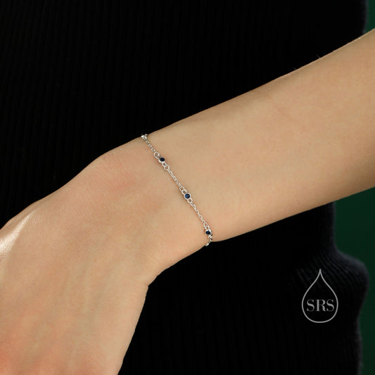 Sterling Silver Extra Delicate Sapphire Blue CZ Bezel Bracelet, Silver or Gold, CZ Satellite Bracelet, Tiny Delicate CZ Bracelet