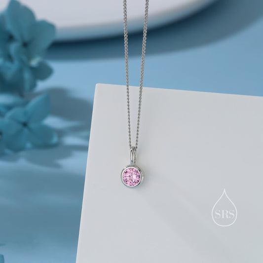 Tourmaline Pink CZ Bubble Pendant Necklace in Sterling Silver, Silver or Gold or Rose Gold, Bezel Necklace, October Birthstone
